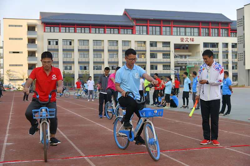 下午,雖然艷陽(yáng)高照,但是卻絲毫沒有影響參賽隊(duì)員們的熱情,賽場(chǎng)更是熱火朝天,加油聲此起彼伏,原來,這是最受職工歡迎和參與率最高的比賽環(huán)節(jié)——趣味類運(yùn)動(dòng)競(jìng)技。今年的趣味競(jìng)技設(shè)置了龜兔賽跑、快樂運(yùn)球、同舟共濟(jì)、滾鐵環(huán)、激情袋鼠、定點(diǎn)投籃和慢騎自行車等項(xiàng)目,既有團(tuán)體比賽,又有個(gè)人積分賽,大家結(jié)合自身的實(shí)際和特長(zhǎng)選報(bào)項(xiàng)目,全身心投入比賽。為了取得好成績(jī),午飯后,很多運(yùn)動(dòng)員放棄了休息,都在操場(chǎng)上反復(fù)練習(xí),不斷總結(jié)經(jīng)驗(yàn)。