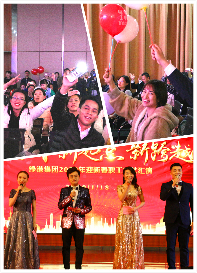 隨后,集團(tuán)總部喜慶歡騰的舞劇《鼠舞龍騰鬧新春》拉開了綠港集團(tuán)2020年職工文藝匯演的序幕,集團(tuán)領(lǐng)導(dǎo)班子,集團(tuán)各部門、各子公司干部員工接連登場(chǎng),以17個(gè)內(nèi)容豐富、積極向上的文藝節(jié)目同賀新春。通過舞蹈、音樂情景劇、歌曲、小品、詩朗誦、文化展示等形式,充分展現(xiàn)綠港鐵軍勇于拼博、團(tuán)結(jié)奮進(jìn)的風(fēng)采和廣大職工團(tuán)結(jié)上進(jìn)的精神風(fēng)貌?!毒G港建設(shè)者》以鏗鏘有力的舞蹈,表現(xiàn)出奮戰(zhàn)在經(jīng)開區(qū)建設(shè)一線的綠港人攻難克艱的決心和擔(dān)當(dāng)?shù)臍馄牵豢凭薰編淼摹洞笤捨饔沃卫砗诔羲w》則講述了綠港鐵軍在打贏黑臭水體攻堅(jiān)戰(zhàn)中,挺身而出,爭(zhēng)做攻堅(jiān)排頭兵的故事;集團(tuán)營(yíng)銷管理中心的歌曲串燒、科巨公司《 We Will Rock You》、嘉通公司《上海灘》和榮鑫公司的《榮鑫似首歌》不僅讓我們一睹國(guó)風(fēng)、爵士風(fēng)、上海灘和懷舊港風(fēng)的風(fēng)采,一句“綠港飛得更高”的高歌更是把全場(chǎng)氣氛帶到了最高點(diǎn)!舞蹈《芒種》、《橋邊姑娘》和萬方公司《溜溜的山寨溜溜的醉》是柔情萬種,百轉(zhuǎn)千回;小品《你有沒有在乎過我的感受》、《家有兒女》取材日常生活,表達(dá)了家和百事興的主題;九略公司《中華攢 瑰寶情》通過對(duì)中華傳統(tǒng)文化的展示,激發(fā)了廣大職工的文化自信;集團(tuán)辦公室、中港興公司聯(lián)合準(zhǔn)備的節(jié)目《我們是一家人》通過手語舞蹈表現(xiàn)出集團(tuán)公司團(tuán)結(jié)一心,同事間真誠(chéng)有愛的良好面貌,讓大家沉浸在一片愛的海洋之中;嘉通公司的朗誦《青春萬歲》則透過稚嫩的童聲帶大家重返美好的青蔥歲月。各節(jié)目精彩紛呈,引得臺(tái)下觀眾呼聲連連。最后,節(jié)目表演在集團(tuán)公司領(lǐng)導(dǎo)班子帶來歡樂活潑的舞蹈《愛》中告一段落,現(xiàn)場(chǎng)四處洋溢著歡樂祥和的氣氛。